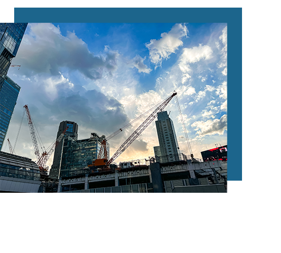 総合建設業とは、建築・土木工事を一式で発注者から元請として直接請負い、工事全体のとりまとめを行う建設会社のことです。各専門分野に長けた会社に仕事を割り振って、プロジェクトのリーダーとして工事が安全かつ予定通りに進行するように統括することが私たちの役割です。